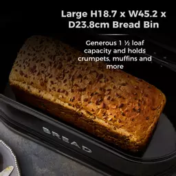 Features a generous 1 and a half loaf capacity and holds crumpets, muffins and more - great for storing all of the family's favourite breakfast items for long-lasting freshness