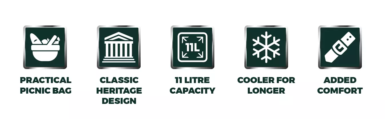This Picnic Tote Bag is ideal for transporting your lunch, snacks and drinks wherever you go. It features classic heritage detailing and subtle colouring, providing you with a stylish way to carry your picnic and is suitable for use as a day-to-day work or school bag. Its large 11-litre capacity is able to fit enough storage containers, tableware and drink bottles for 2 people.
