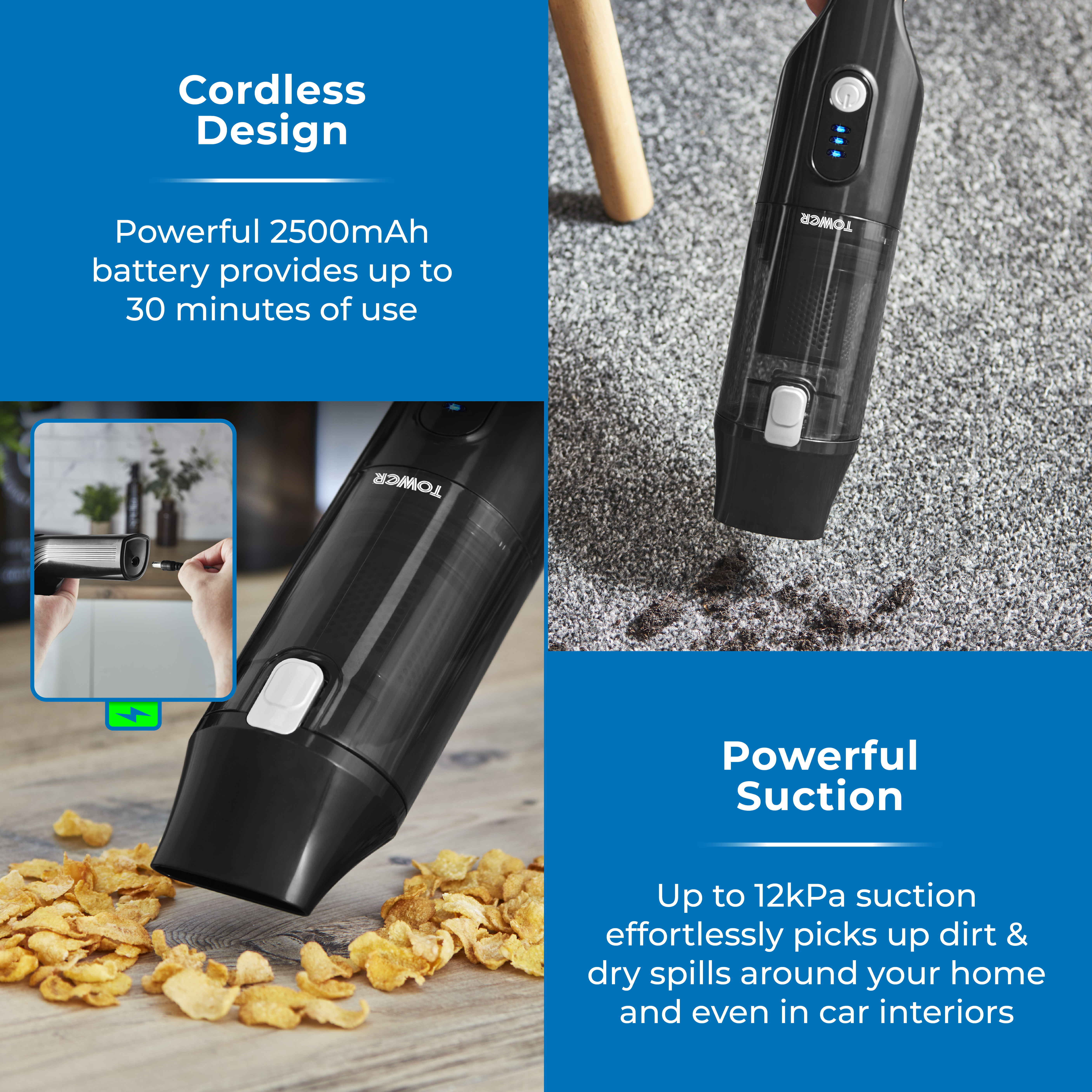 The Tower cordless handheld vacuum cleaner is everything you need for a quick clean.