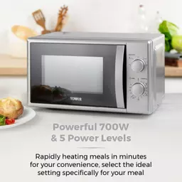 Quick and convenient cooking at your fingertips with this silver manual microwave. The 700W output will rapidly heat meals in a matter of minutes, featuring 5 different power levels to suit a wide range of dishes. Offering Tower’s ingenious Magnawave technology, its high-performances circulates concentrated waves around the unit for even heat distribution; ensuring every meal is cooked to the perfect consistency. Featuring a 35-minute timer, it helps to ensure food is cooked accurately for the best tasting results, which can be amended using the easy-to-use manual dial. There is also a defrost function, which allows you to cook food straight from the freezer for added convenience. Warm up a quick snack or a tasty meal in minutes, adhering to your busy lifestyle.