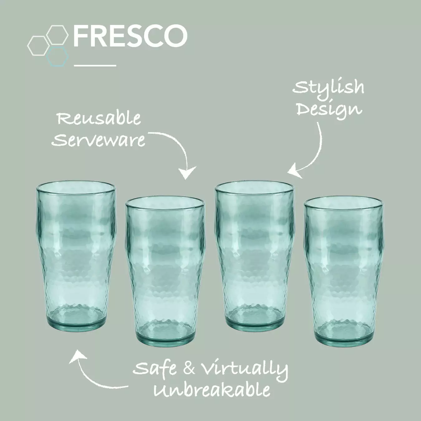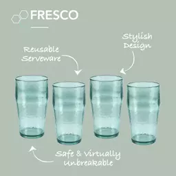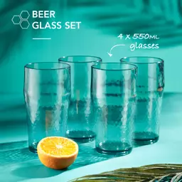 Enjoy chilled beverages in the sun with this stylish Fresco 4 Piece Beer Glass Set. It comes with 4 x 550ml glasses which are great for serving beer, cider, craft ale and soft drinks. Each glass is made from reusable plastic to help cut down on disposable drinking cups. Not only eco-friendly, the sturdy plastic material is designed to be shatterproof when dropped for safer use around children and pets.