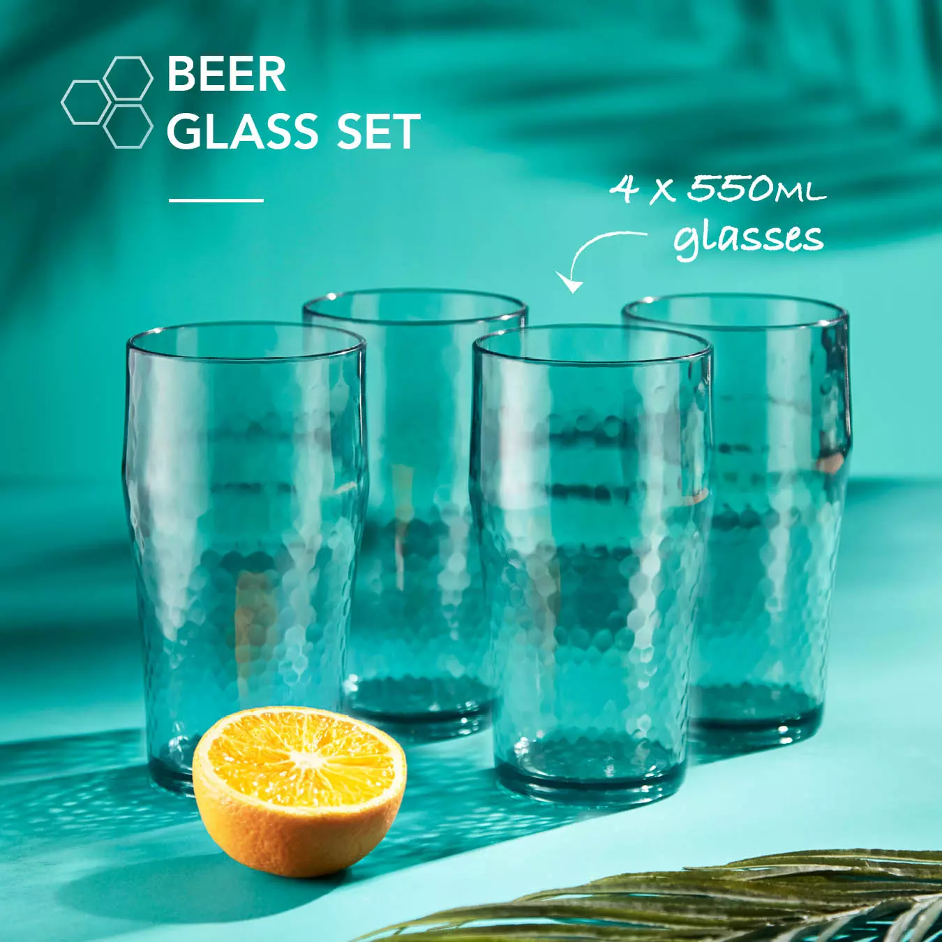 This drinkware set includes 4 plastic beer glasses with a generous 550ml capacity each, suitable for serving beer, cider, craft ale and soft drinks