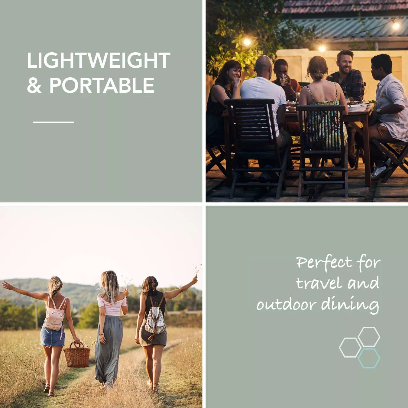 Lightweight materials make this set easy to take with you on your travels for use at picnics, camping, hiking and other outdoor occasions