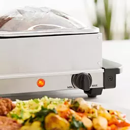 Perfect for meat, vegetables and side dishes, this buffet tray has an easy to use control that heats dishes to the ideal temperature for long periods of time without the worry of overcooking,