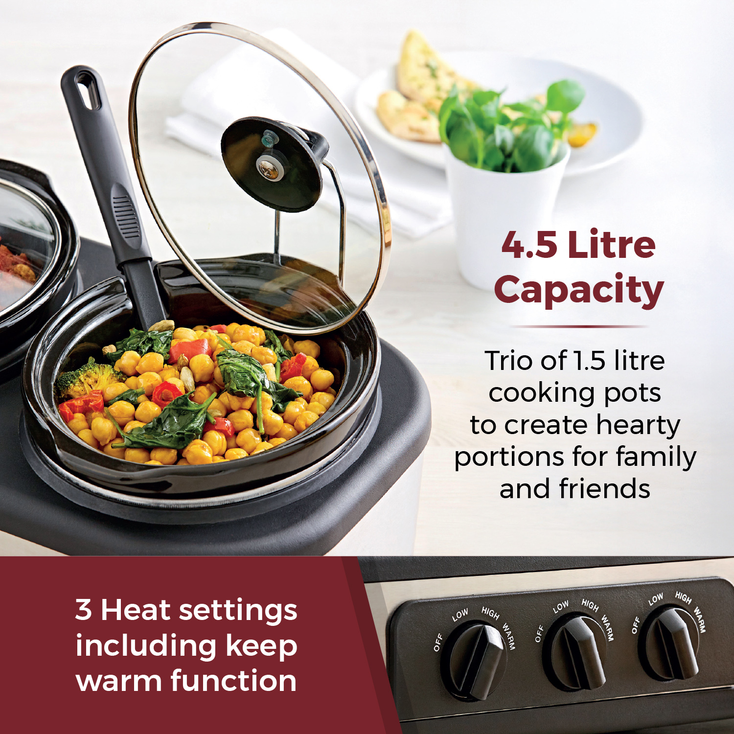 Boasting a total capacity of 4.5L with three 1.5L cooking pots so you have plenty of space to create full family meals in no time.