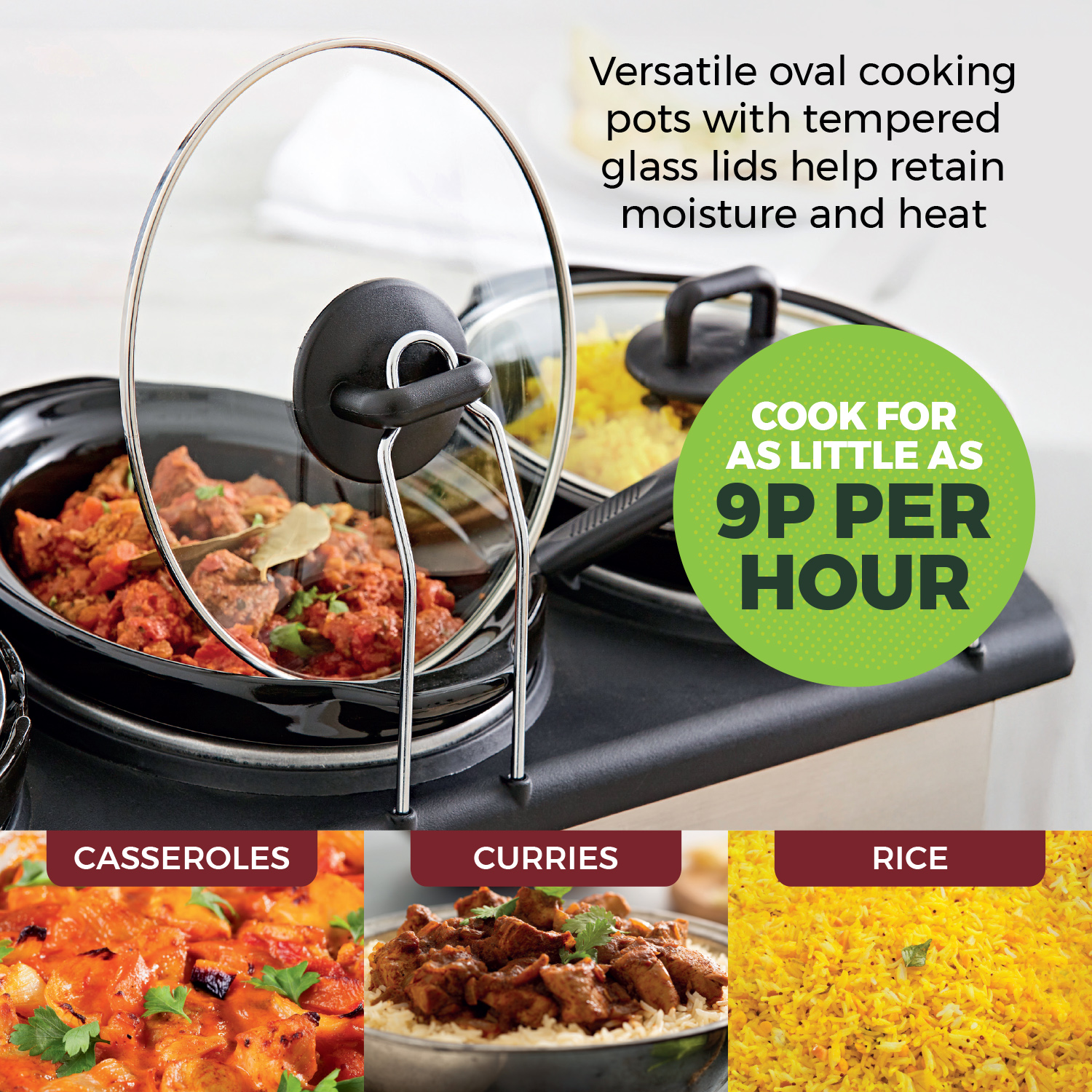 Each pot has built-in independent controls that allow you to cook 3 different dishes at the same time, ideal for creating large family meals or putting on a buffet for guests.