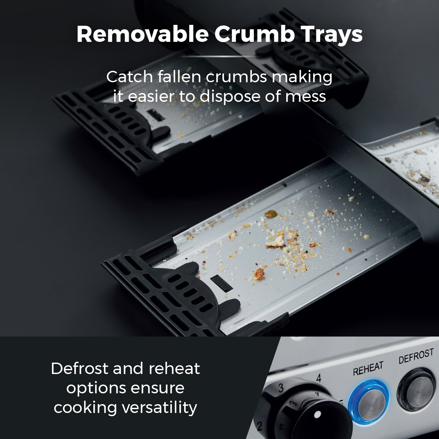 Installed with 2 removable trays to catch fallen crumbs and make it easier to dispose of mess